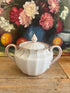 Vintage suikerpot met elegante, sierlijke details. Gemaakt van fijn porselein en afgewerkt met prachtige goudkleurige accenten voor een luxueuze uitstraling. Perfect het bewaren van suiker of snoepjes.