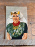Op de kaart zie je een vrouw gekleed in een karakteristieke klederdracht die kenmerkend is voor deze regio.