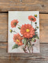 Deze vintage prent uit 1953 van koraalkleurige dahlia's is een prachtige toevoeging aan elke ruimte. De prent is gedrukt op hoogwaardig karton en toont een gedetailleerde illustratie van dahlia's in hun volle bloei.