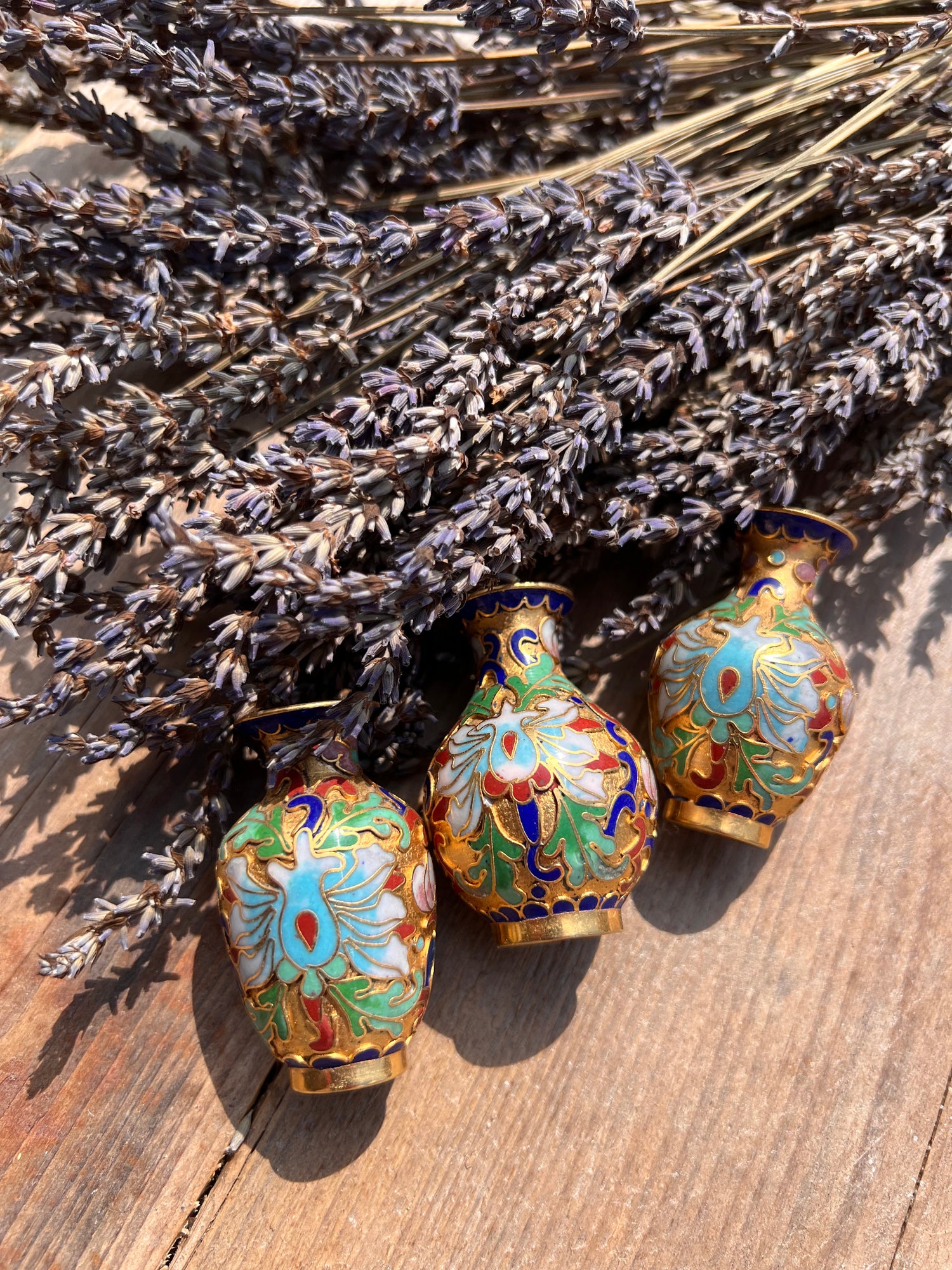 Drei chinesische Miniatur-Cloisonné-Vasen