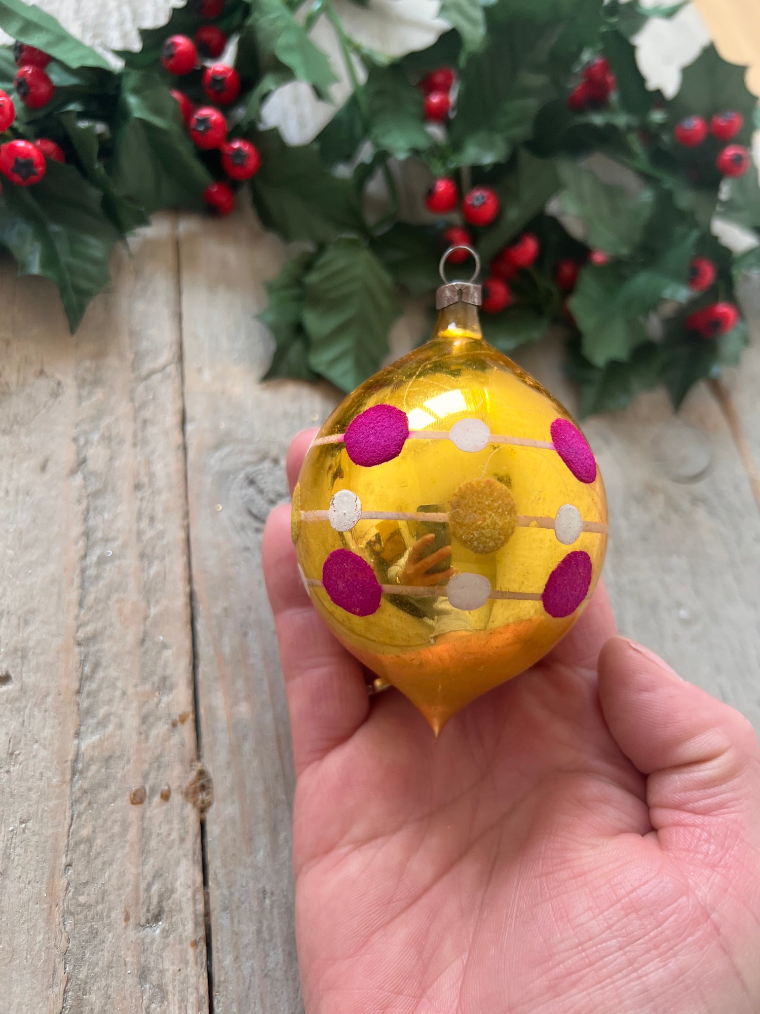 Deze vintage kerstbal brengt de sfeer van weleer terug in huis. De goudkleur en de polkadots op de kerstbal geven hem een tijdloze elegantie. Een kerstbal die past in elk interieur en die de nostalgische kersttraditie nieuw leven inblaast.
