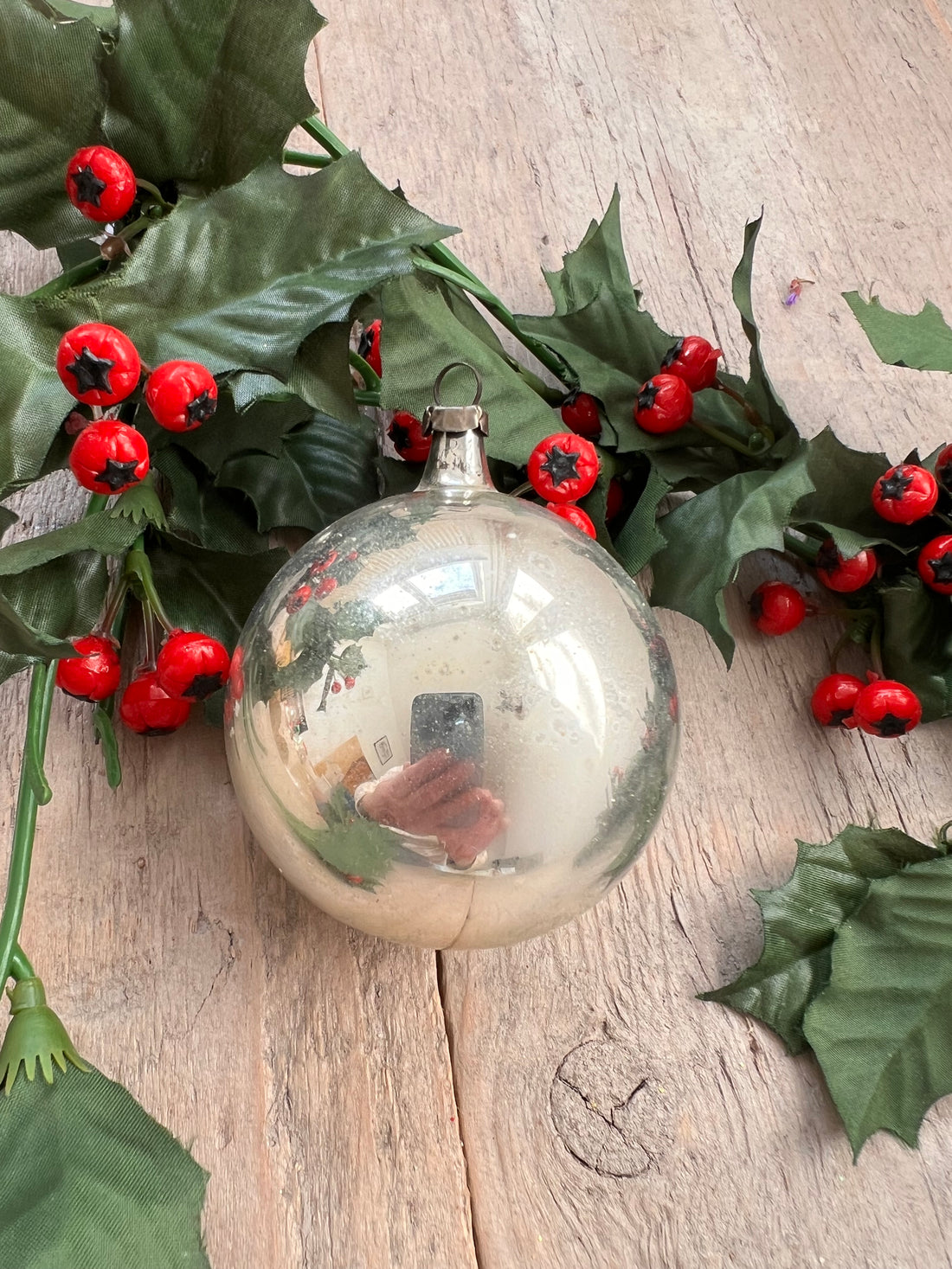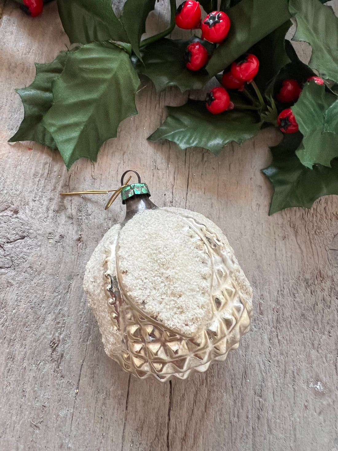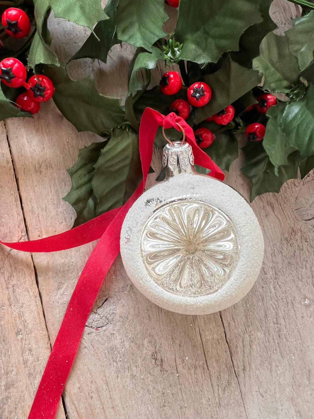 Vintage kerstbal met witte bloemetjes- Regular price