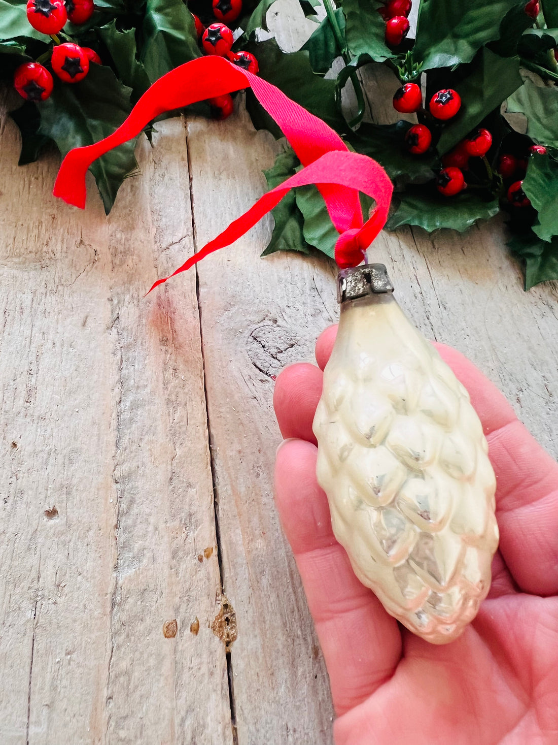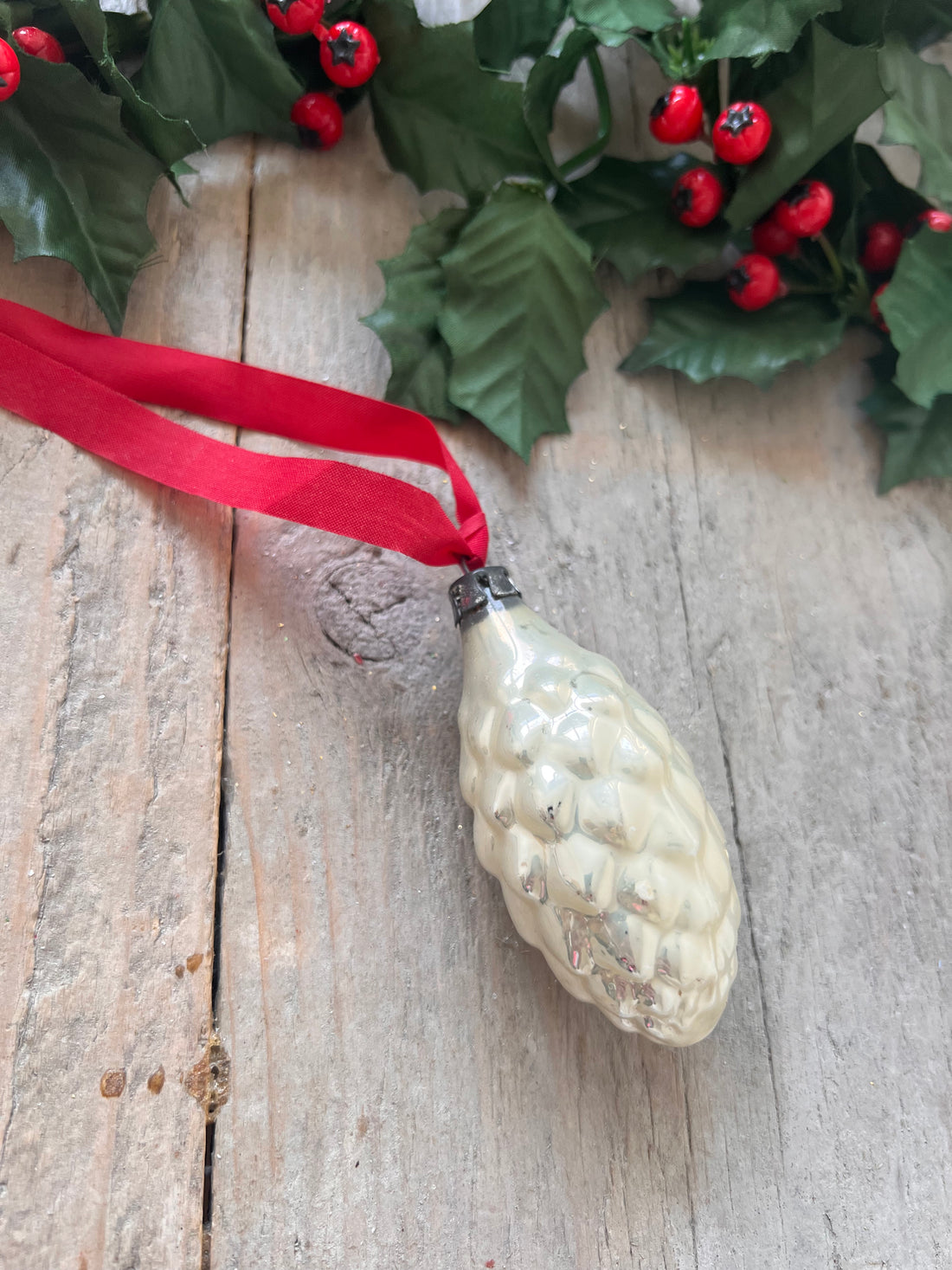 Witte dennenappel kerstbal- Regular price