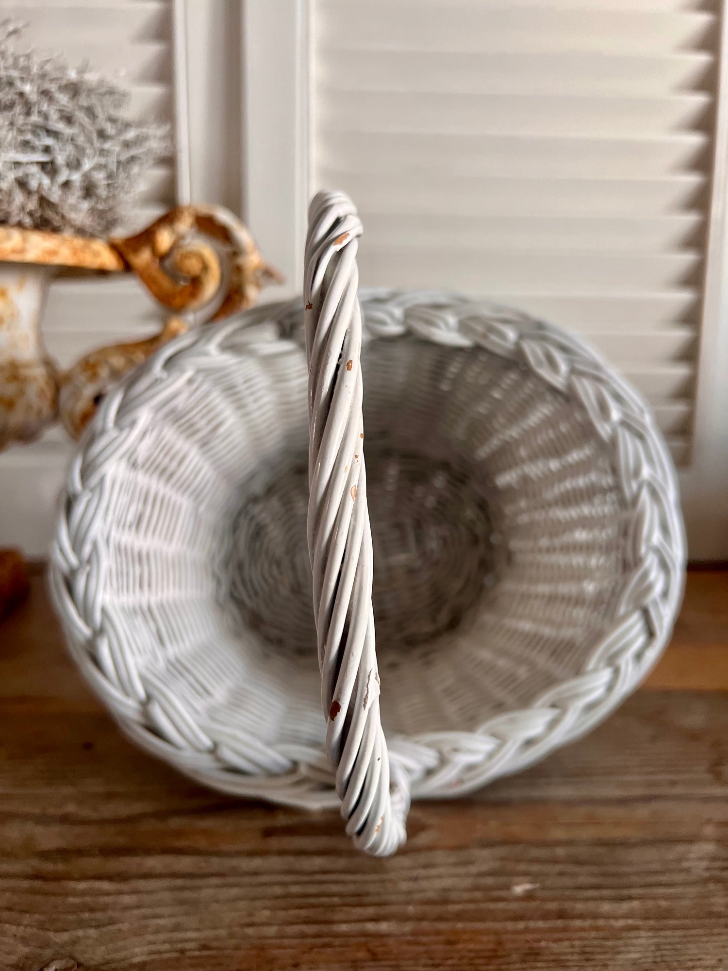 Dit kleine, wit rieten mandje brengt een nostalgische, vintage sfeer in huis tijdens de Paasdagen. De natuurlijke textuur en de witte afwerking geven het een tijdloze en charmante uitstraling. Ideaal voor kinderen om op zoek te gaan naar paaseieren en hun gevonden paaseieren in te verzamelen. Een leuk cadeau of decoratie-item voor Pasen.