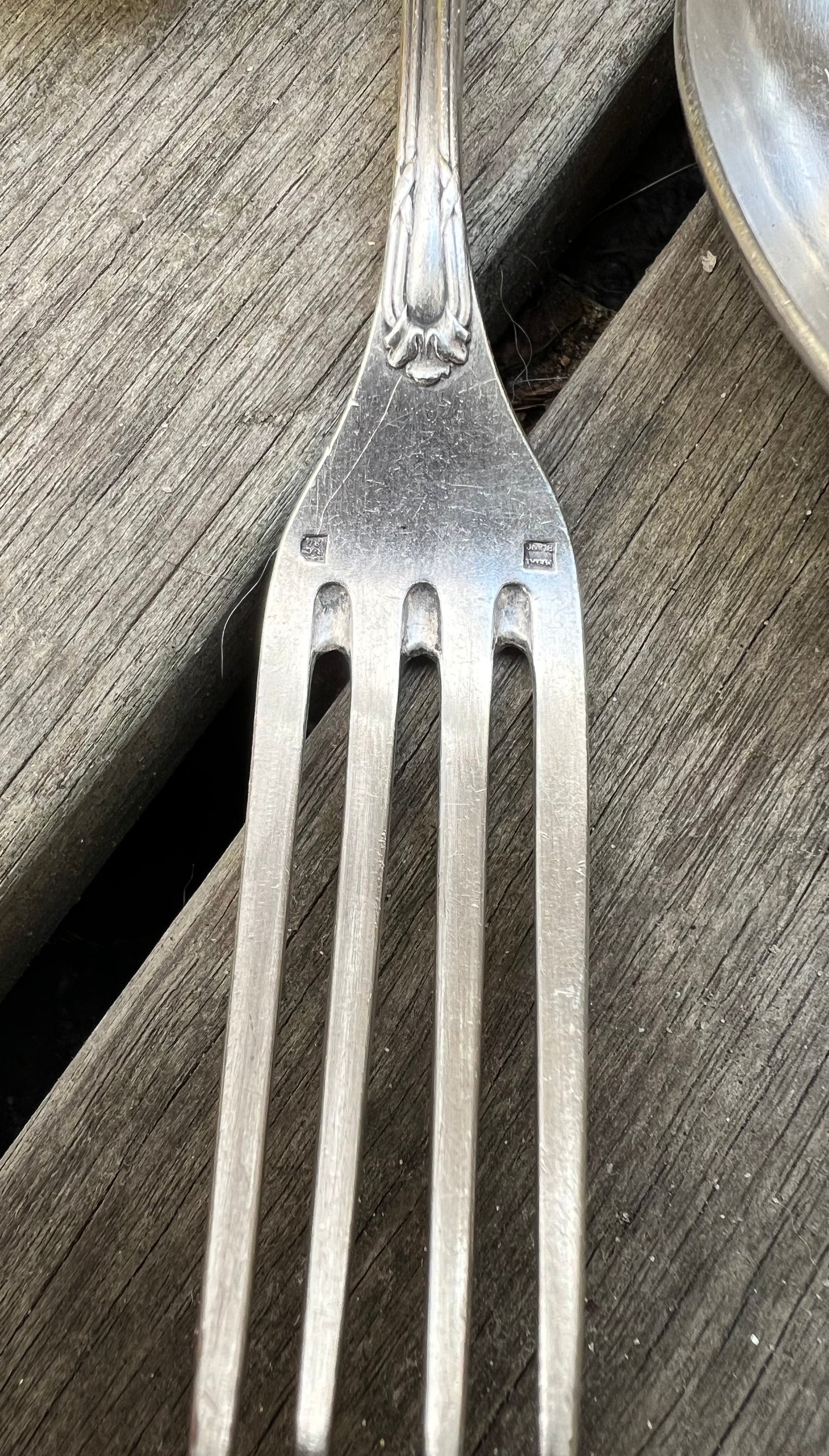 Deze elegante, verzilverde vork en lepel zijn prachtige antieke exemplaren uit de Art Nouveau periode. Het sierlijke, organische design met golvende, natuurlijke lijnen is kenmerkend voor deze kunststroming aan het begin van de 20e eeuw.
