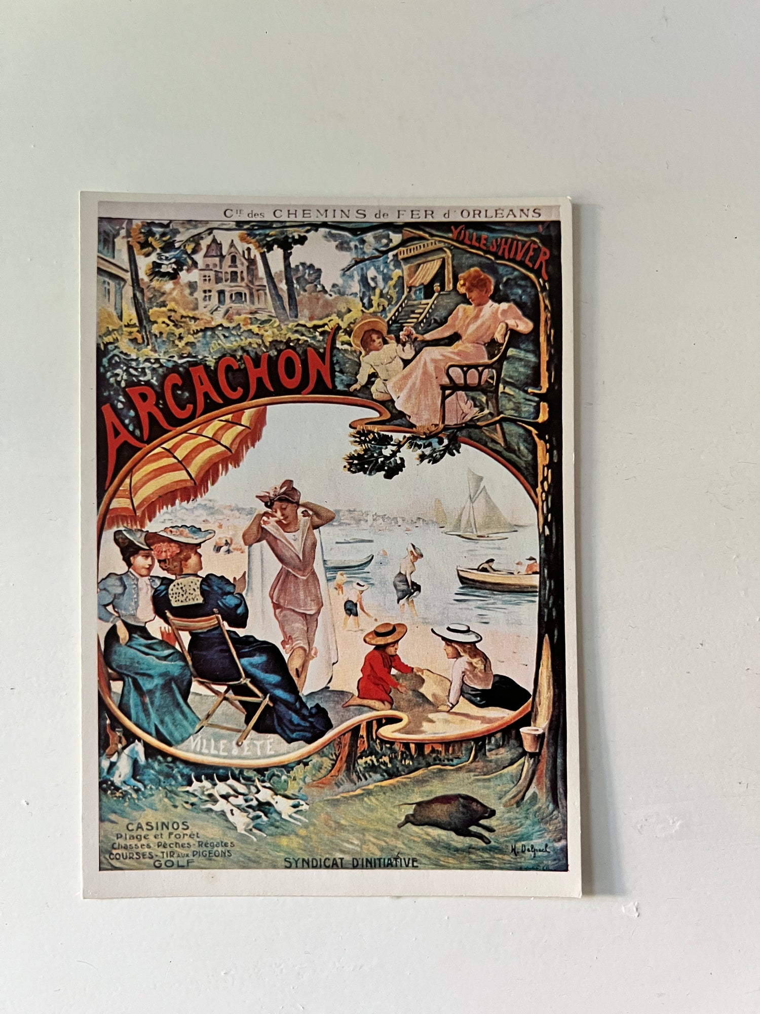 Set vintage ansichtkaarten van Franse badplaatsen – een charmante set met sfeervolle afbeeldingen van zonnige kustplaatsen en nostalgische zomermomenten. Perfect om toe te voegen aan je verzameling, te versturen als bijzondere groet of te gebruiken als decoratie in huis. Elke kaart straalt de tijdloze allure uit van populaire Franse badplaatsen Malo les Bain, Arcachon Le Touquet Paris-Plage en brengt de mooie herinneringen van vroeger tot leven.
