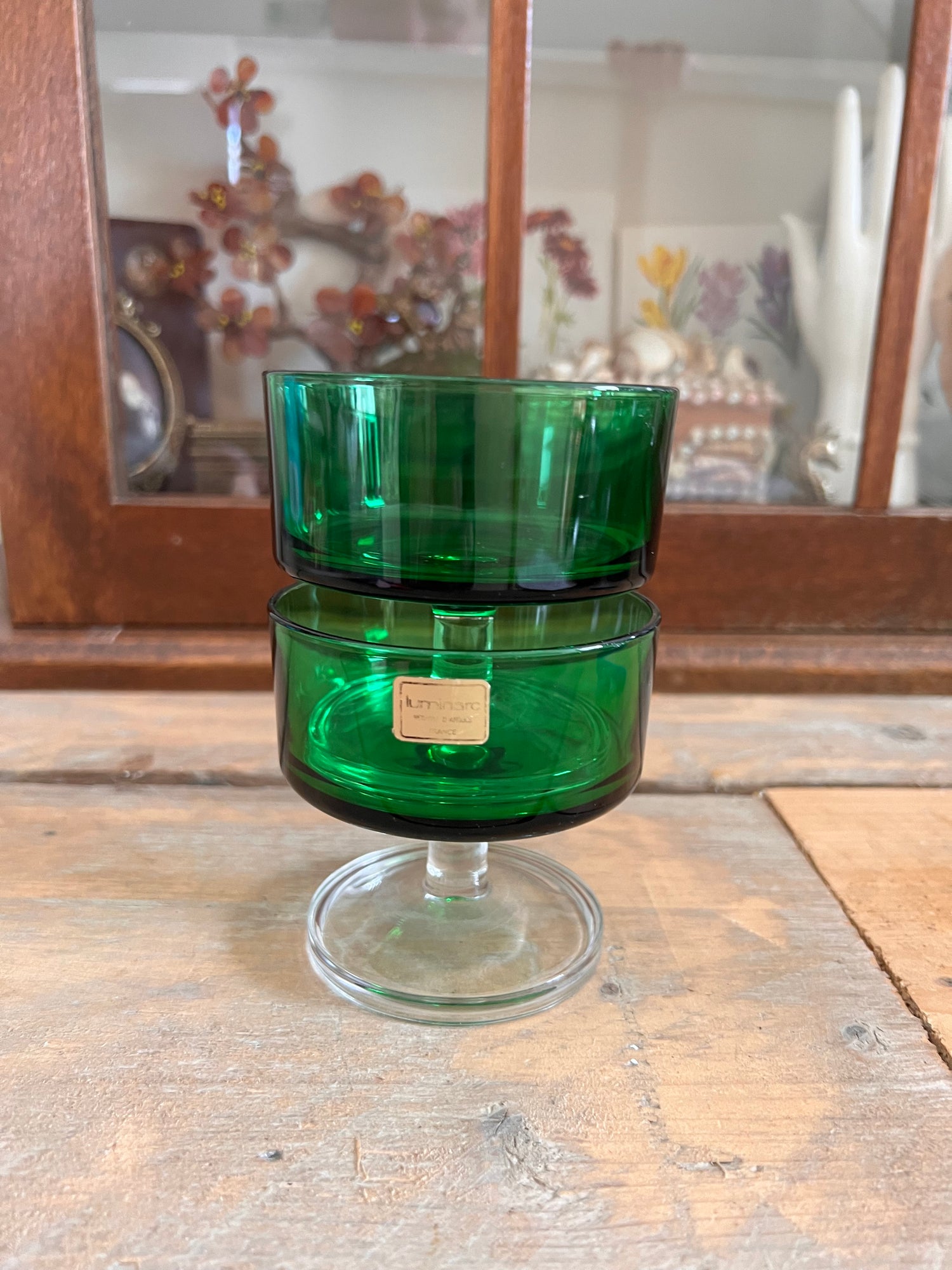 Dit stapelbare dessertglas van Luminarc is prachtig vintage glaswerk dat elegantie en gezelligheid aan je tafelsetting toevoegt. Het glas is gemaakt van hoogwaardig smaragdgroen glas, wat zorgt voor een luxueuze uitstraling.